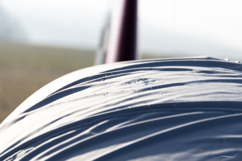 - Hlavní vlastnosti: Vnější materiál chrání před nečistotami, poškozením nebo poškrábáním, odpuzuje vlhkost a zabraňuje proniknutí vody na sklo kabiny. Vnitřní strana materiálu je jemná aby nedošlo k poškození zevnitř.